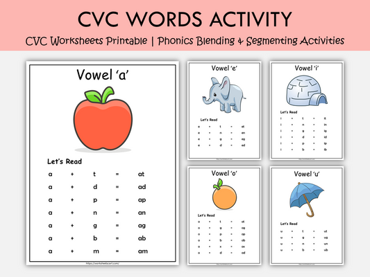 CVC Words Worksheets Printable – Phonics Blending & Reading Practice, WWF168