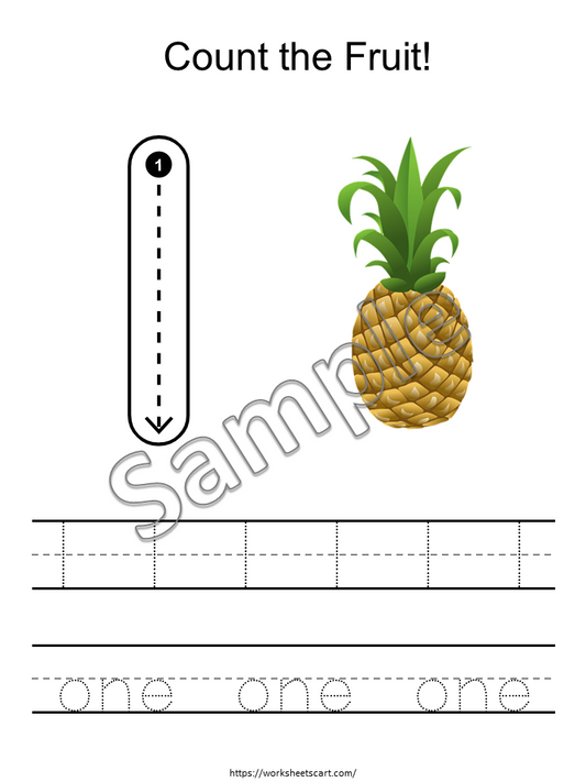 Numbers 1-10 Tracing Worksheets Printable for Kids, Preschool Number Writing & Counting Fruits Activity, Kindergarten Math Practice, WWF421