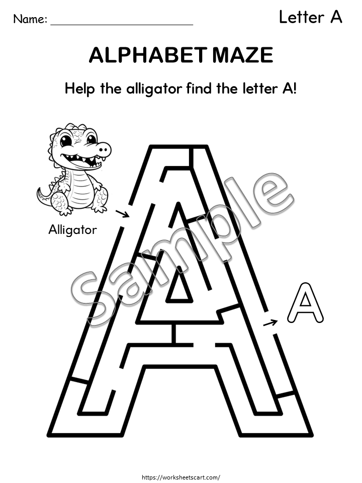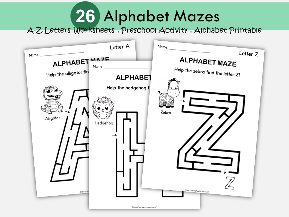• 26 Alphabet Letter Maze Worksheets (A–Z)
