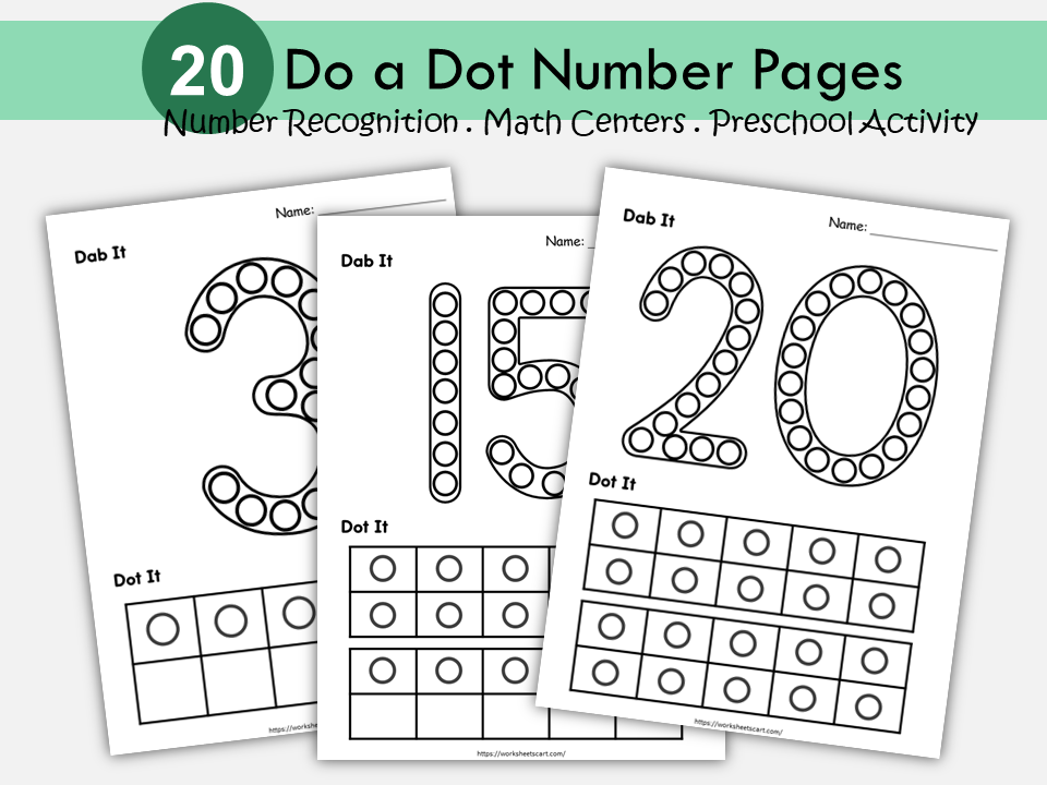 Do a Dot Number Printable for Toddlers | Number Dab and Dot Worksheets 1-20 | Dot marker Activity for Preschool and Kindergarten, WWF507