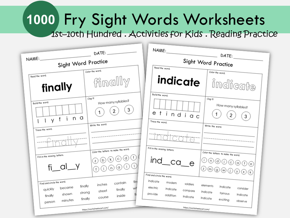 Help young readers build confidence and fluency with this comprehensive set of Fry Sight Words Worksheets covering the 1st through 10th Hundred (1–1000 words)! These printable worksheets are perfect for kindergarten through 3rd grade, offering structured practice to master high-frequency words essential for reading success.