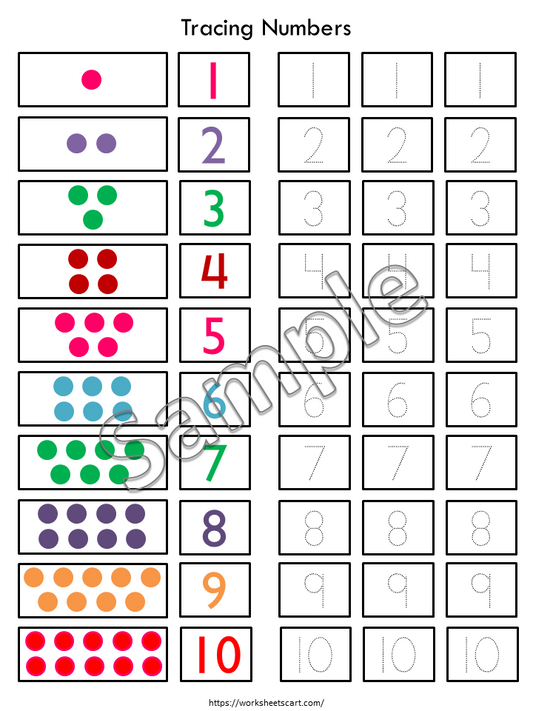 Tracing Numbers 1-10, Number Tracing Worksheets, Preschool, PreK, Kindergarten Math, Toddlers Activity, Number Words, Teacher Resource, WWF147