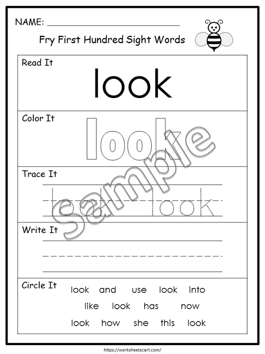 100 Fry Sight Words Worksheet Printable, Sight Words Bundle, Fry First Hundred Sight Word Work Sheets, Kindergarten, First Grade, Homeschool, WWF193