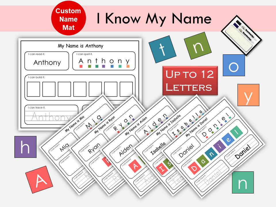 Name Mat, I Know My Name, Custom Name Tracing Sheets, First & Last Name Worksheets, Dry Erase Name Mats, Preschool Printable, Educational, WWF258